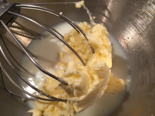 Klop de ongezoete slagroom net zolang tot het gaat schiften in boter en wei.